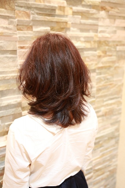 ミディアムぐらいの伸ばしかけのヘアーは扱が大変ですが 、パーマで思い通りに!
